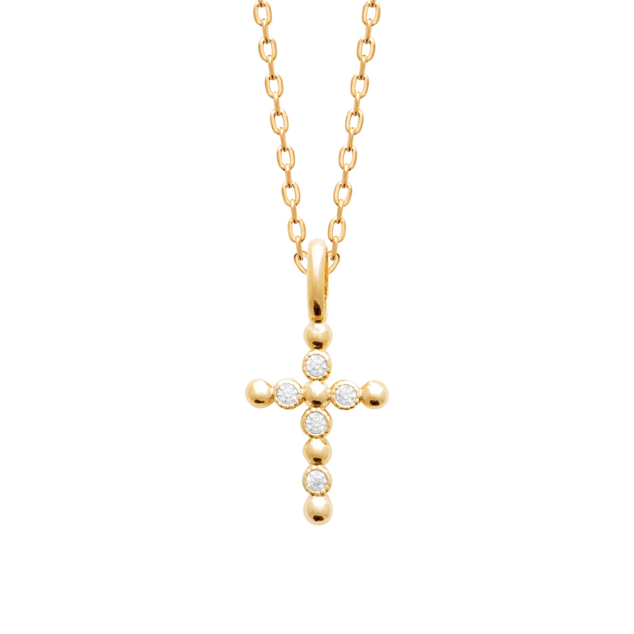 Un collier délicat orné d’une croix lumineuse, sublimée par de fines pierres scintillantes ✨