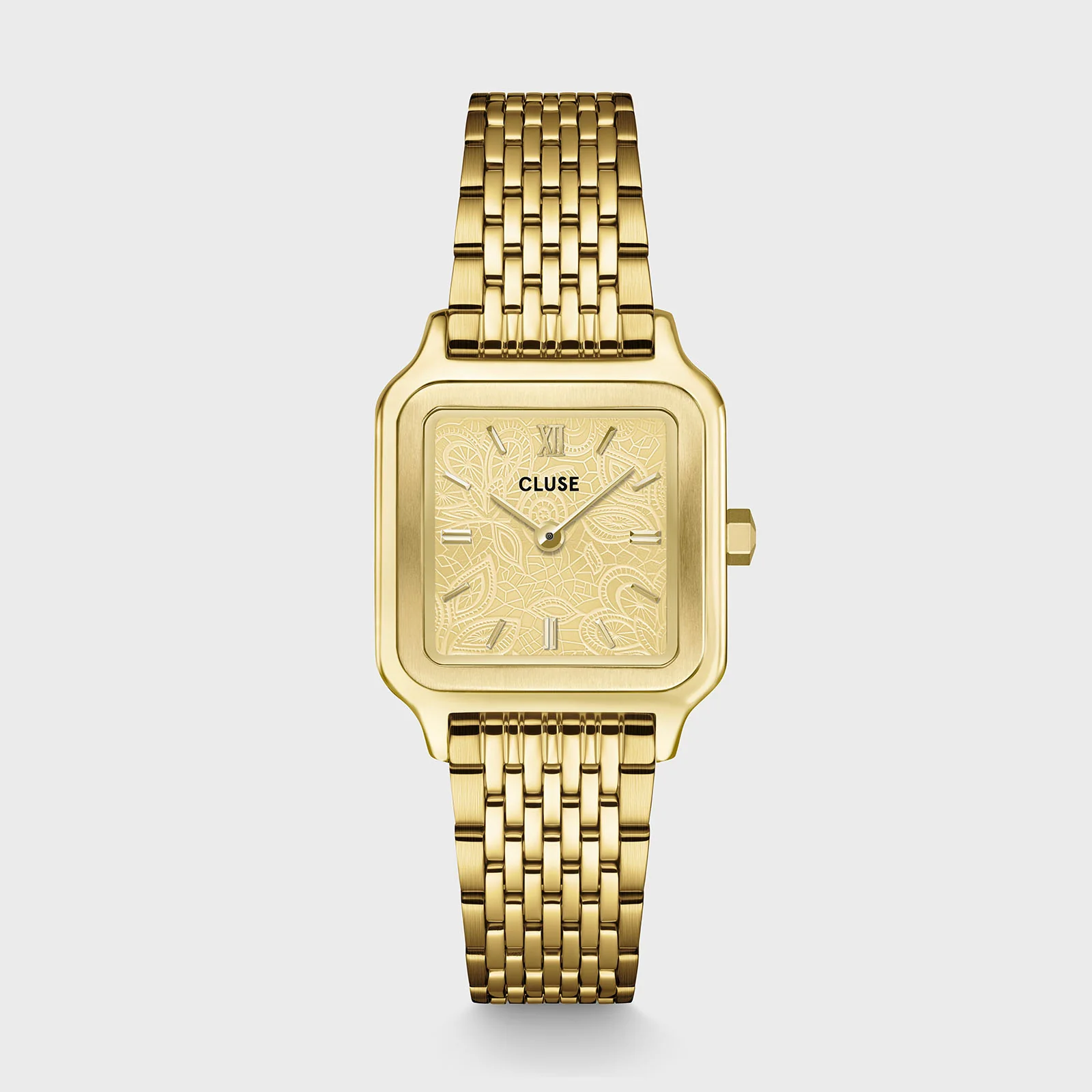 La montre Gracieuse Petite de CLUSE incarne la finesse et le raffinement dans un format plus discret. Son cadran carré orné de motifs délicats et son bracelet doré en font un bijou subtil et sophistiqué.