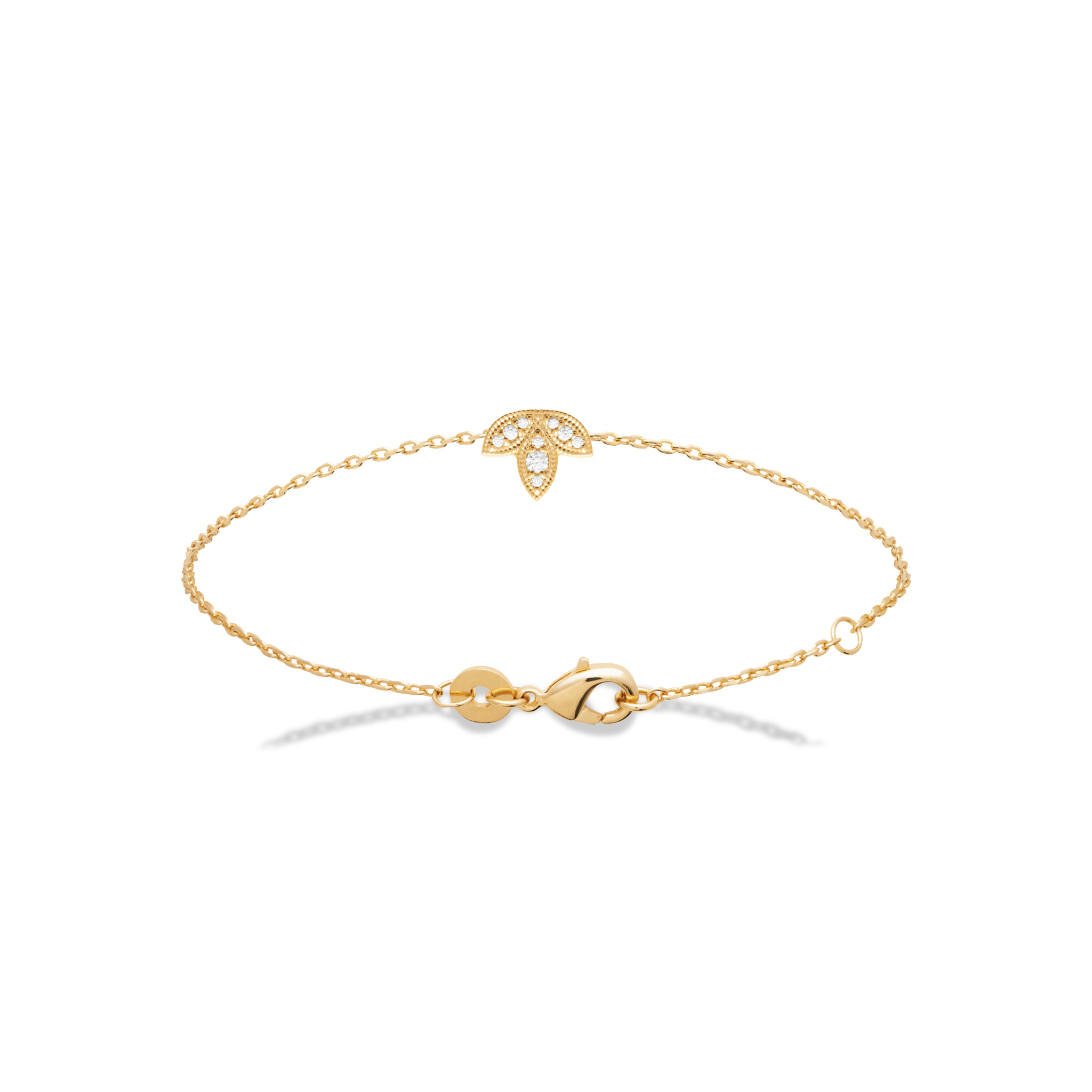 Craquez pour ce bracelet fin en plaqué or 18 carats, délicatement orné d’un pendentif en forme de feuille stylisée, sublimé par de petits oxydes de zirconium brillants. Une pièce au design chic et discret, idéale à porter seule ou en accumulation.