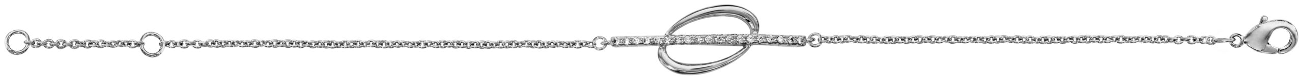 Ce bracelet en argent 925 se distingue par son motif central entrelacé, mettant en valeur une barre élégamment sertie d’oxydes de zirconium scintillants. Son style épuré et moderne en fait un bijou raffiné, à porter aussi bien au quotidien qu’en soirée.