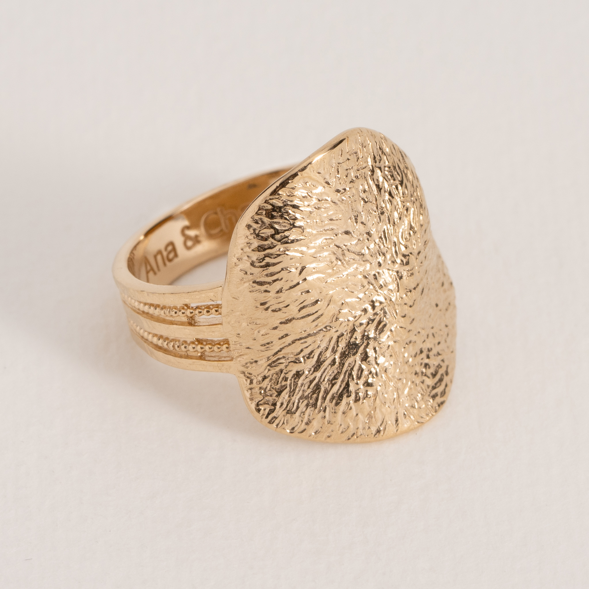 La bague SUZIE plaqué or 18 carats – Texture martelée & allure audacieuse est une pièce forte et intemporelle, conçue pour celles qui aiment les bijoux à la fois élégants, singuliers et puissants.