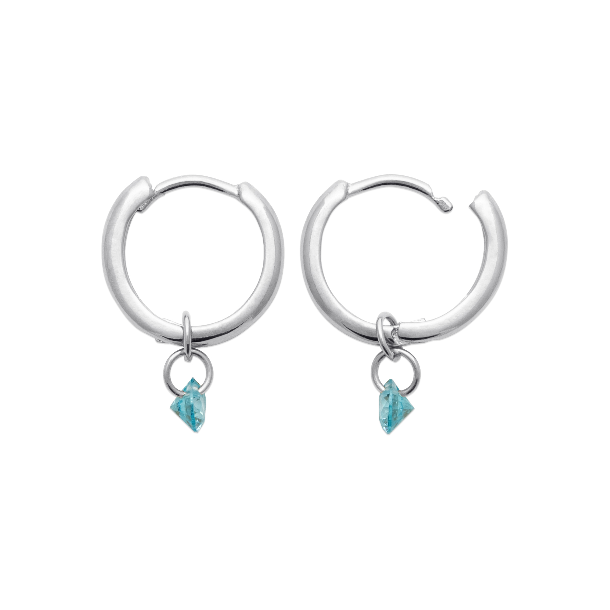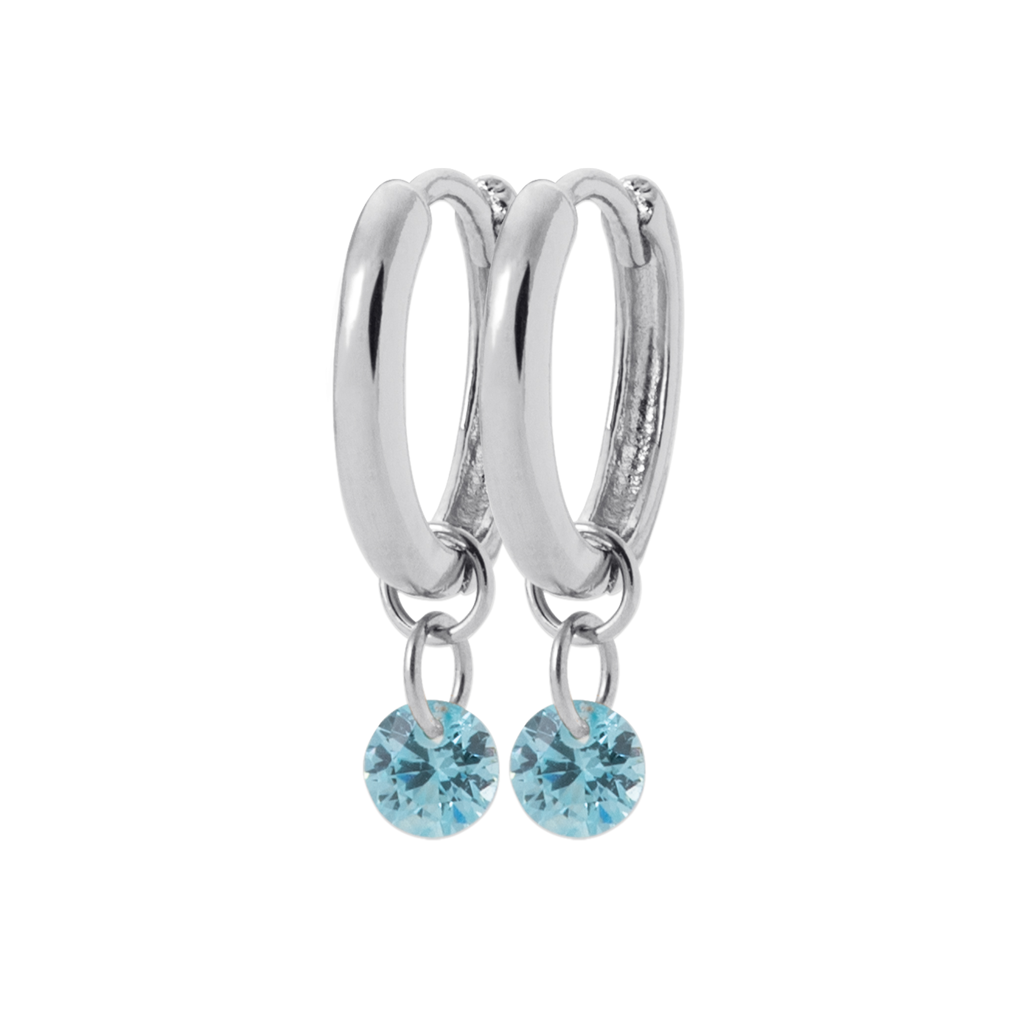 Boucles d’oreilles créoles argentées avec pendentif cristal bleu