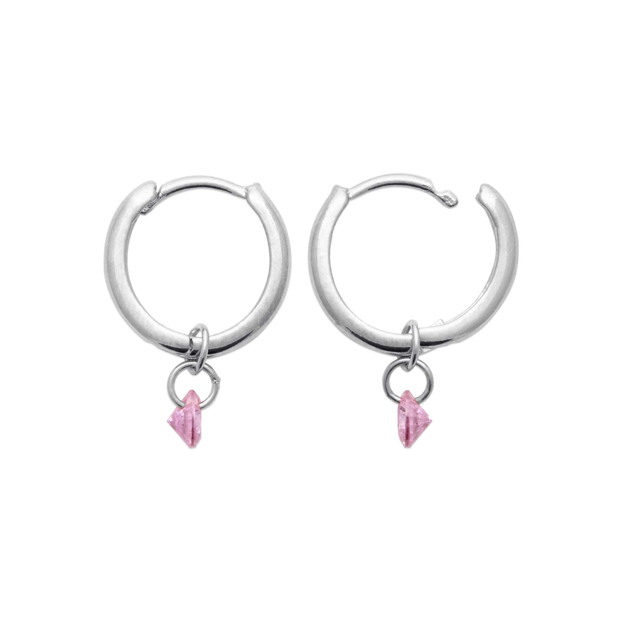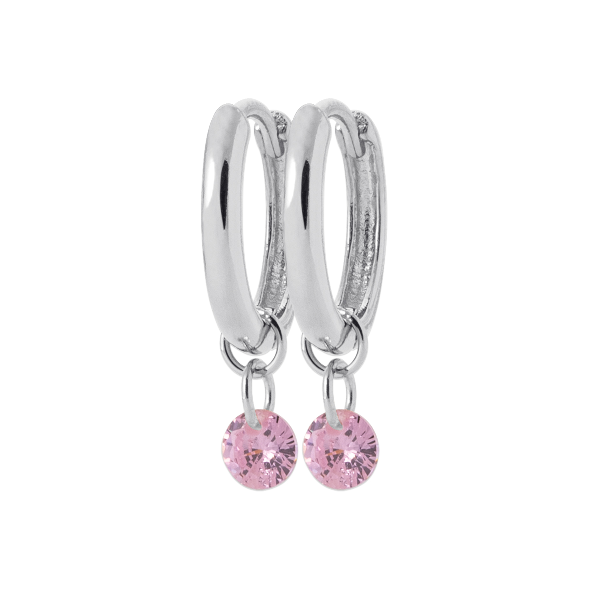 Boucles d’oreilles créoles argentées avec pendentif cristal rose