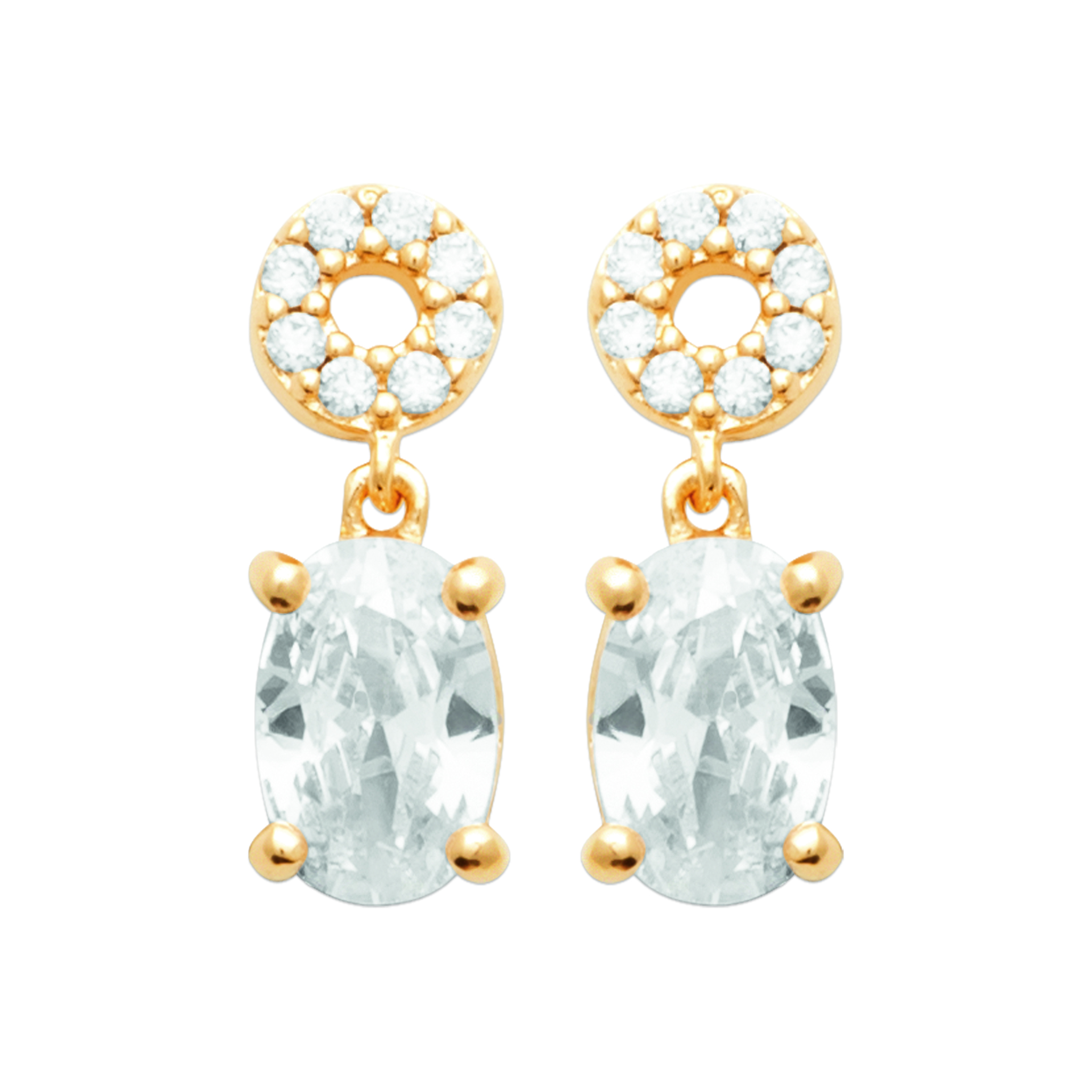 Boucles d’Oreilles Pendantes Plaqué Or & Pierres Ovales – Éclat Classique et Élégance Féminine