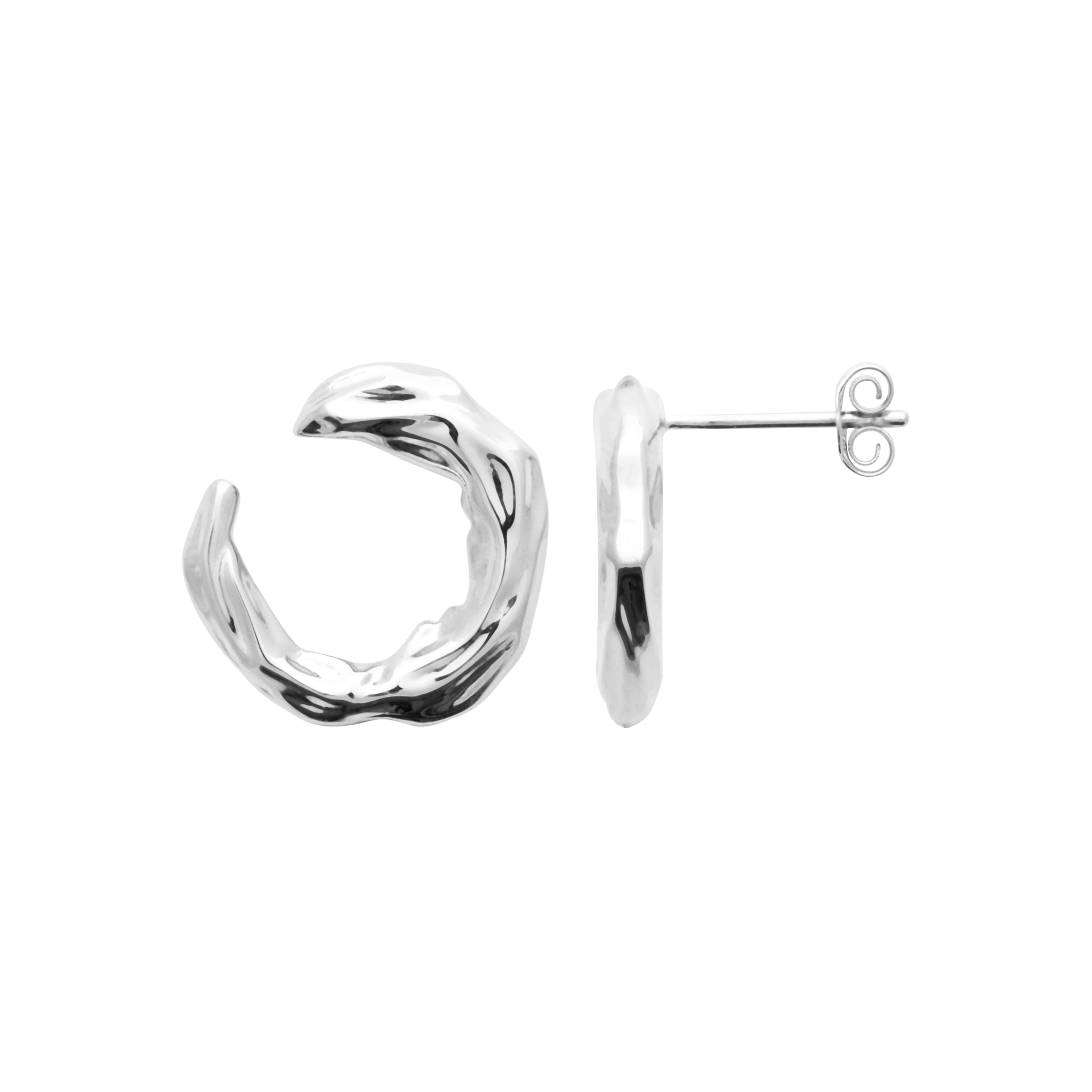 Audacieuses et contemporaines, les boucles d’oreilles Vague Brute en argent 925 adoptent une silhouette irrégulière aux contours organiques, évoquant une vague figée en mouvement. Leur surface polie reflète la lumière avec intensité, pour un look moderne et affirmé.