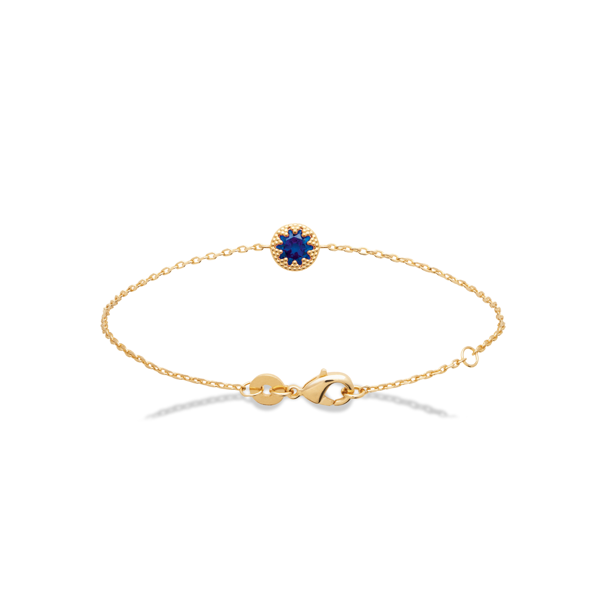 Sa chaîne fine en plaqué or 18 carats épouse le poignet avec élégance et légèreté, offrant un bijou délicat et confortable au quotidien. Porté seul, Blue Aura rayonne avec subtilité ; associé à d’autres bracelets, il crée un effet d’accumulation moderne et raffiné.