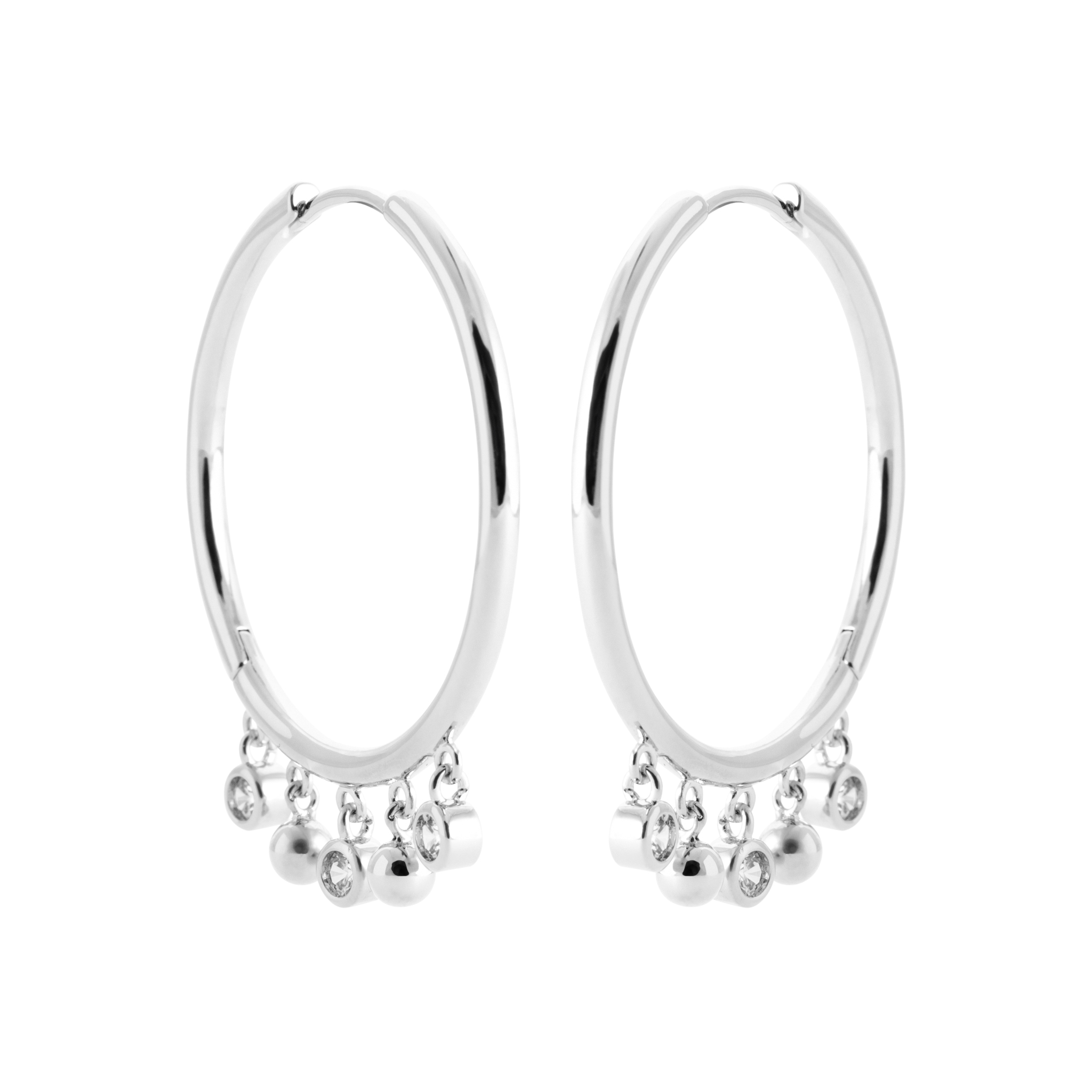 Ajoutez une touche de fraîcheur et d’élégance à vos tenues avec les Créoles « Pampilles Éclatantes ». Ces anneaux argentés classiques sont délicatement sublimés par de petites pampilles mobiles, mêlant perles lisses et pierres scintillantes. Leur mouvement fluide capte la lumière à chaque geste, apportant éclat et dynamisme à votre look.