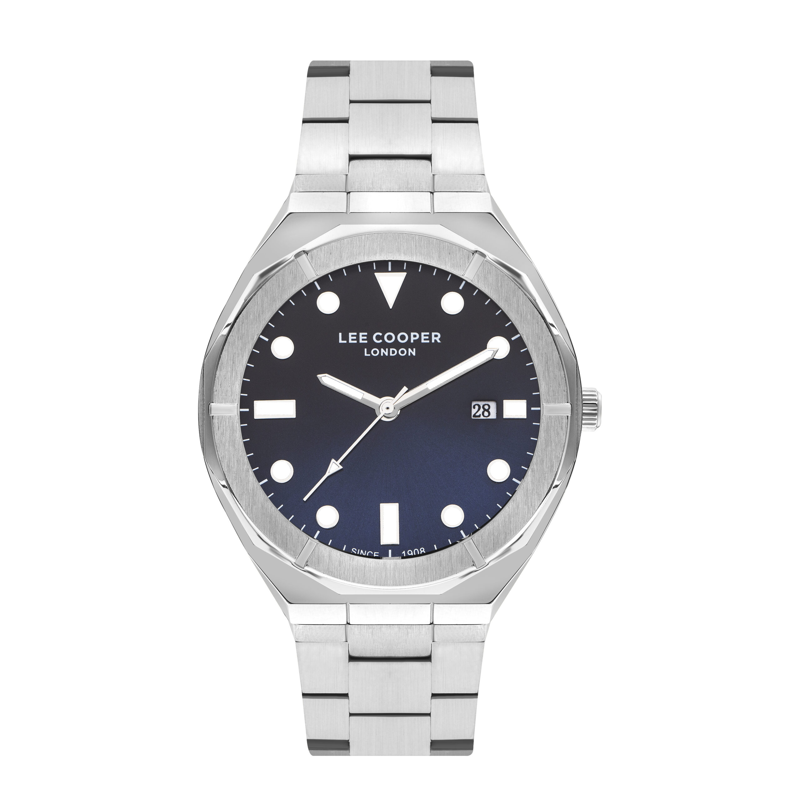 Affichez un style épuré et contemporain avec cette montre Lee Cooper au design intemporel. Son boîtier en acier inoxydable est parfaitement assorti à son bracelet métallique, pour un rendu à la fois robuste et raffiné. Le cadran bleu dégradé, agrémenté d’index géométriques et d’un guichet date discret, apporte une touche moderne tout en assurant une lisibilité optimale. Un modèle polyvalent, idéal pour accompagner toutes vos tenues, du bureau aux sorties décontractées.